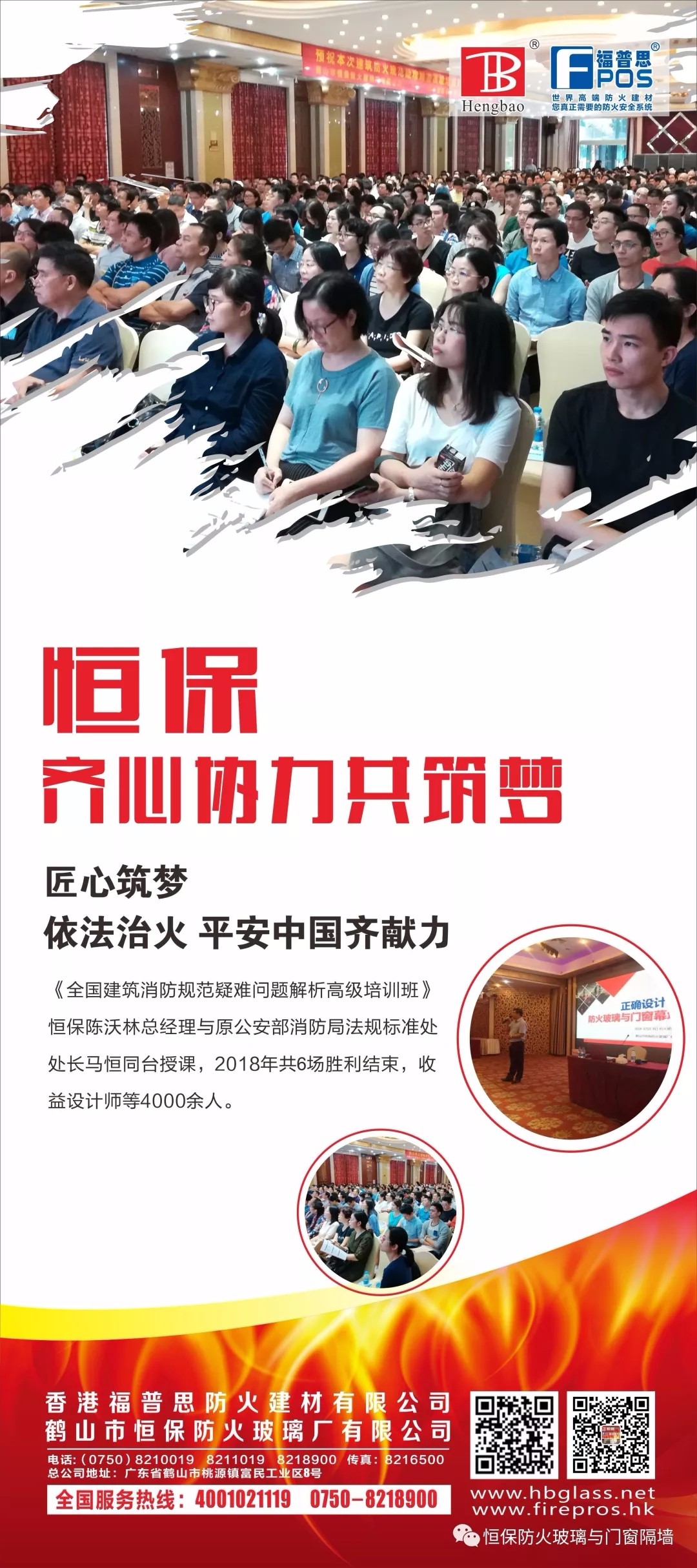 鶴山市恒保防火玻璃廠有限公司2018年與“中國(guó)建筑設(shè)計(jì)研究院人才培訓(xùn)中心”原公安消防局法制標(biāo)準(zhǔn)處處長(zhǎng)馬恒一起分別廣東深圳、湖南長(zhǎng)沙、湖北武漢、廣西南、山東濟(jì)南、廣東廣州,共同舉辦了6場(chǎng)《全省建筑消防規(guī)范疑難問(wèn)題解析高級(jí)培訓(xùn)班》,所到之處深受到設(shè)計(jì)師們的歡迎,受益設(shè)計(jì)師達(dá)4000多人次。
