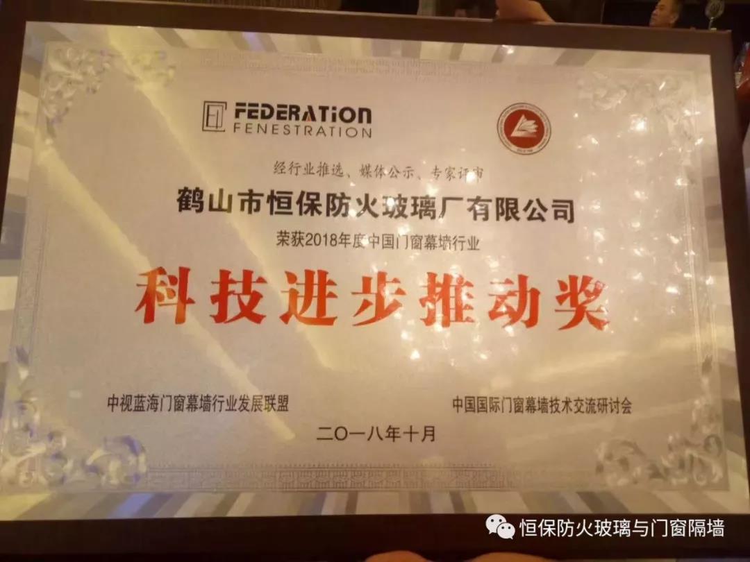 鶴山恒保公司在此次交流研討會(huì)中,獲大會(huì)專家評(píng)審并頒發(fā)2018年度中國(guó)門窗幕墻行業(yè)“科技進(jìn)步推動(dòng)獎(jiǎng)”。