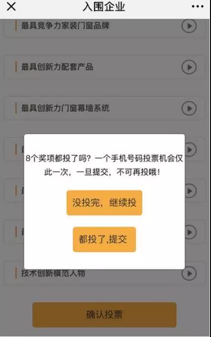 當確認選擇完所有需要投票的企業(yè),請點擊頁面最下方提交按鈕,完成投票。