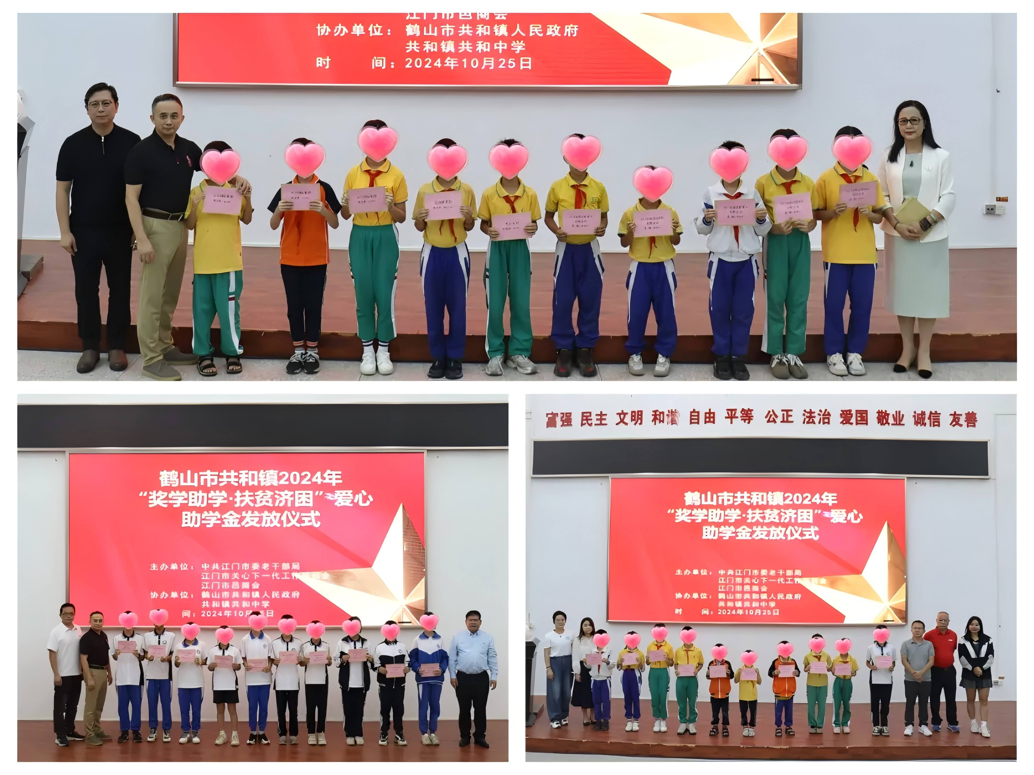 2024年10月25日,江門市委老干部局、江門市關(guān)工委、共和鎮(zhèn)委鎮(zhèn)政府,攜手江門市邑商會(huì),在共和中學(xué)舉行了“獎(jiǎng)學(xué)助學(xué)·扶貧濟(jì)困”愛心助學(xué)金發(fā)放儀式,為我鎮(zhèn)優(yōu)秀困難學(xué)子筑夢未來。這次活動(dòng)讓我回想起自己當(dāng)年小學(xué)初中求學(xué)時(shí)的情景,感慨萬千,同時(shí)提升了我個(gè)人和《灣區(qū)華商》在公眾心目中的形象。這是一次愛心的傳遞,更是一次精神的洗禮,激發(fā)了廣大學(xué)生的學(xué)習(xí)熱情,為共和鎮(zhèn)教育事業(yè)的發(fā)展注入了新的動(dòng)力。
